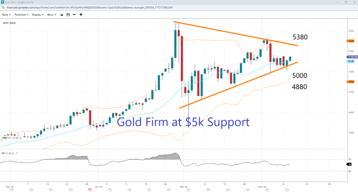 Wednesday is the release of February CPI figures, which are projected to show continued stickiness that could keep the Fed on hold for a while. The headline CPI is expected to remain unchanged at 2.4%, while the core rate, which excludes volatile components such as energy and food prices, is expected to remain at 2.5%. On Friday, the Fed's preferred inflation metric, the Core PCE price index, is released, but it was delayed from January due to the government shutdown. It is also expected to remain unchanged at 3.0%. Despite fluctuations in energy markets, but have turned slightly more hawkish after Iran struck at Gulf oil production facilities. Markets are not expecting a rate cut until July, and the odds have narrowed to around 50-50 from around 60-40 a week ago. Meanwhile, gold prices were fluctuating in , as the war in Iran was expected to push up inflation and hurt gold prices in the short term. However, Trump’s comments reversed early losses, and gold closed Monday in the green.
