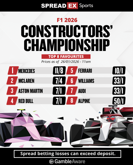 We will have a range of both fixed odds and spread betting markets available throughout the season. We currently have markets live on the Spreadex website for the outright winners of both the Constructors’ and Drivers’ Championship. Mercedes are the current favourites for the Constructors’ Championship at 11/8, with George Russell’s team expected to adapt well to the new rule changes.